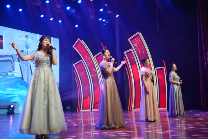 最后,晚会在区卫生健康局副科级以上领导干部、区直各医疗卫生单位领导班子成员、各镇街卫生院主要负责同志的大合唱《我们走在大路上》圆满落下帷幕。